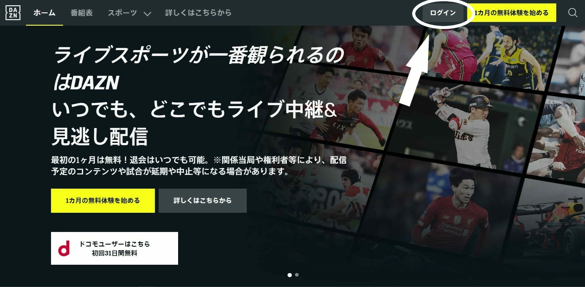 1.DAZN公式サイトにアクセスして「ログイン」を選択