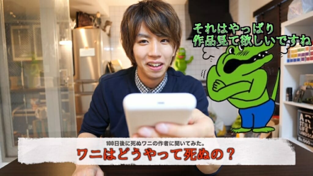 2020年3月10日、人気YouTuberのはじめしゃちょーが「100日後に死ぬワニの作者にどうやって死ぬのか聞いてみた。」と題する動画を投稿した。ツイッターで話題の「100日後に死ぬワニ」の作者、きくちゆうきとの電話内容を公開されている。