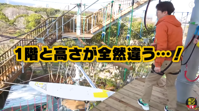 なるといっちーは、丸太とボルダリングの要素を掛け合わせたアスレチックにて、最高難易度のコースに挑戦してみることに。最初は順調かと思われたなるだが、足場が難しく絶叫と共に落下、救助されてしまう。いっちーも果敢に挑むが、あまりの怖さに動けなくなり再び救助。この施設では途中で止まってしまってもレスキュースタッフがいるので安心して遊べる。それを紹介出来たという意味では成功だったのかもしれない。