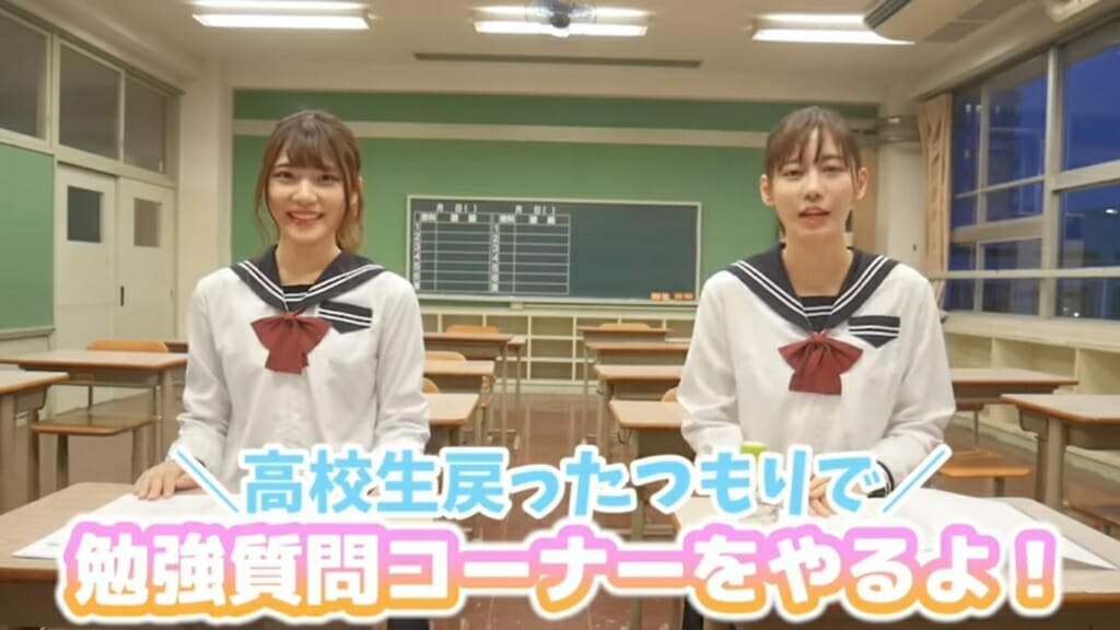 受験勉強に関する企画で、ゆきりぬとかこちんが制服姿で撮影に臨んだ。モチベーションの出し方や英語の文法対策など、高校生たちからの質問に答えた。「高校生より可愛いってどゆこと?」とのコメントが寄せられるなど大好評を博している。