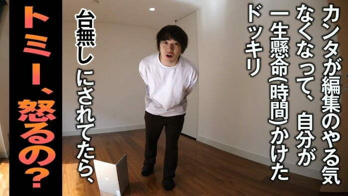 今回は、自分が引っかかっているドッキリの動画を毎回編集している、カンタからの仕返しとして「落とし穴ドッキリの動画を台無しにされてたらトミーは怒るのか」という検証を行うことに。