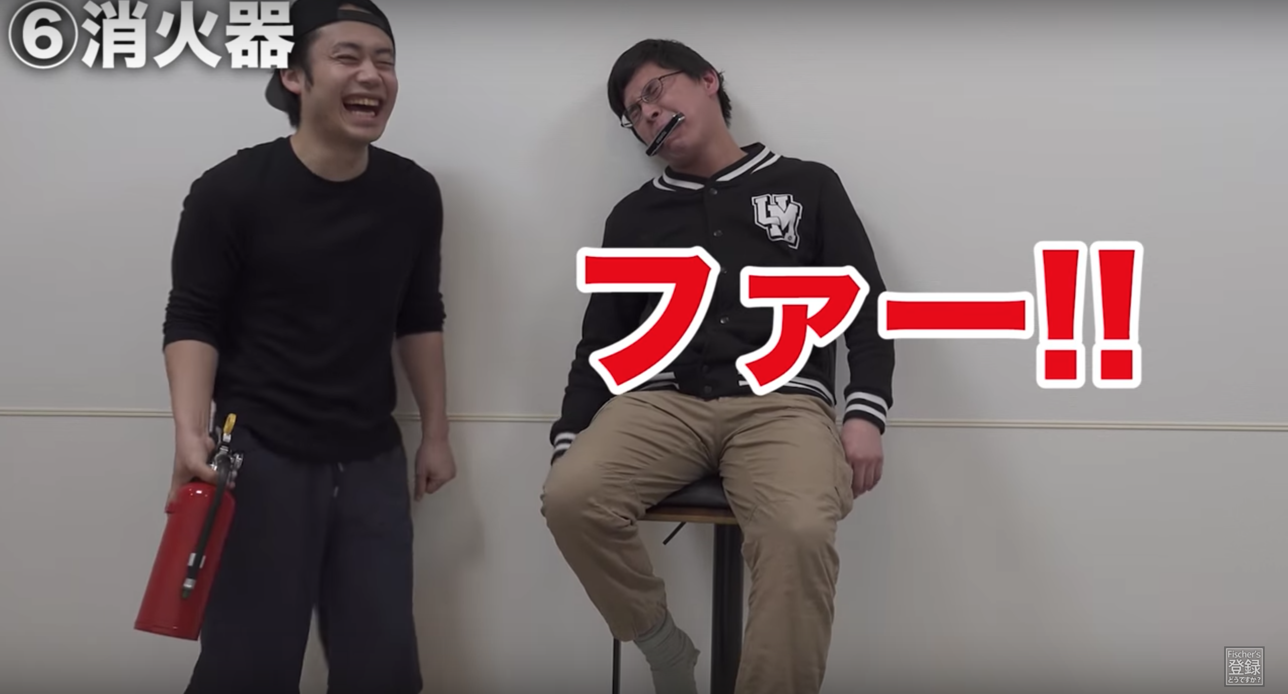 バットやフライパンでも無反応だったダーマが消化器では一瞬にしてKO。きれいに「ミ〜ファ〜ミー」とハーモニカの音を鳴らしメンバー大爆笑となった。