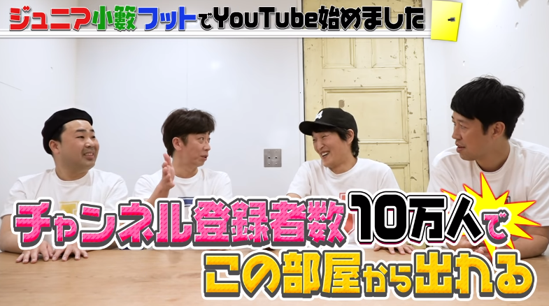 また、YouTubeといえば最初に決めるのが「登録者が◯◯万人になったら・・・」という目標。現在まだ超低予算で動画を撮影している「ジュニア小籔フットのYouTube」では、登録者数が10万人を突破したらロケ解禁というルールを設けることとなった。
