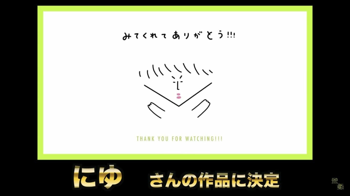 そしてついに、新しいEDが決定した!採用されたのは、「にゆ」さんの作品だ。ほのぼの系の可愛らしいエンディングになっている。以前のゲーム風とは打って変わり、穏やかなパステルカラーのエンディングだ。心機一転、新たなはじめしゃちょーのシンボルとなるであろう。