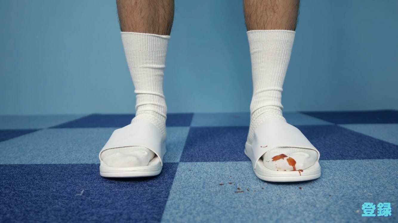 まずは上記の本家を見ていただきたいのだが、見比べてみると黄色い衣装や背景、足元の靴下も完全再現されている。本家では鼻血が垂れていたが、すしらーめんりくはアメリカンドッグを頬張り、ケチャップを足元に垂らすことで再現している。