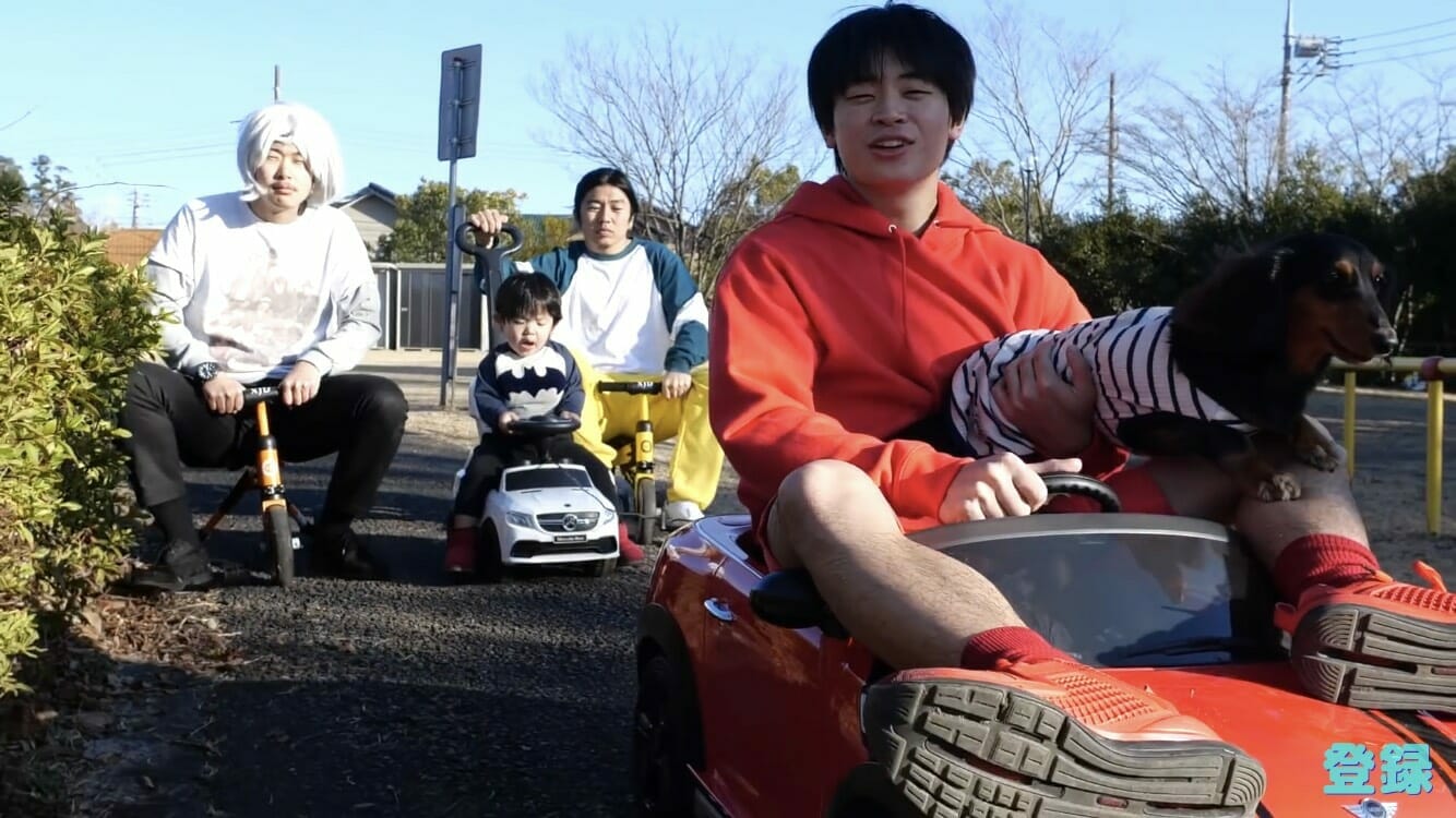 本家のPVでも印象的なミニカーに乗るシーンも、非常にシュールに再現されている。家族と共にミニカーで移動するすしらーめんりく。本家は強そうな仲間たちが集結しているが、すしらーめんりくの方はマイルドな人選になっている。これもまたオリジナリティーがあって良い味を出している。