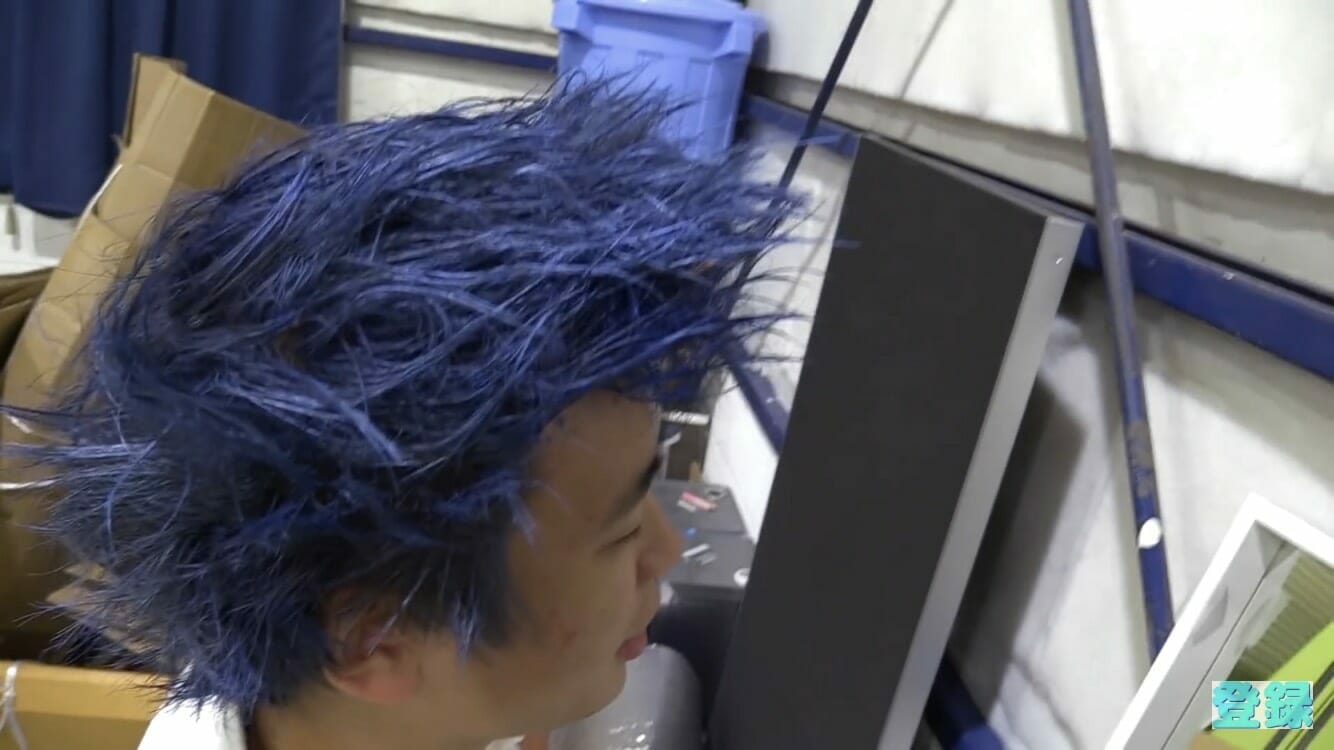 ビリーアイリッシュといえば、グリーンとブルーの中間のような綺麗な髪色がトレードマークである。すしらーめんりくも、まずは髪の毛を青色に染め、外見からビリーアイリッシュに近づいていくようだ。その後は衣装に着替え、撮影を進めていく様子が映し出されている。