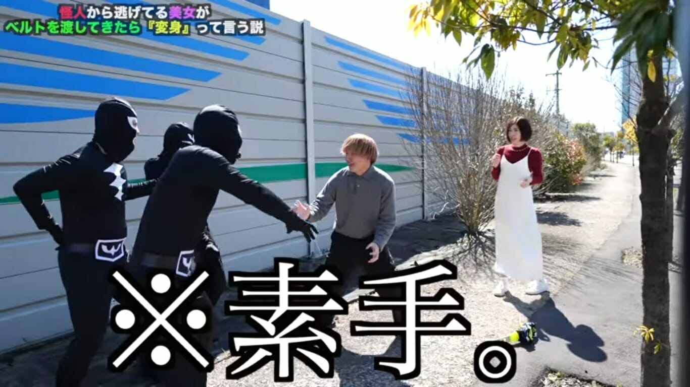 2020年4月16日、人気YouTuberのはじめしゃちょーが「襲われてる美女に突然変身ベルトを渡されたら「変身!」って言う説」という動画を投稿した。怪人に美女が襲われている特撮の定番シーンの再現に挑んだ。