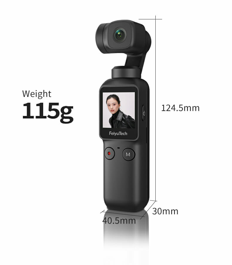 ポケットに入るくらい、圧倒的にコンパクトな「Feiyu pocket」のカメラには、8.1メガピクセル、ソニー製の1/2.5インチセンサーを搭載し、4K/60fps を120mbsでの撮影を可能に。1ピクセルの面積は1.62μmに拡大され、低ノイズかつ高品質の画像撮影もできる。