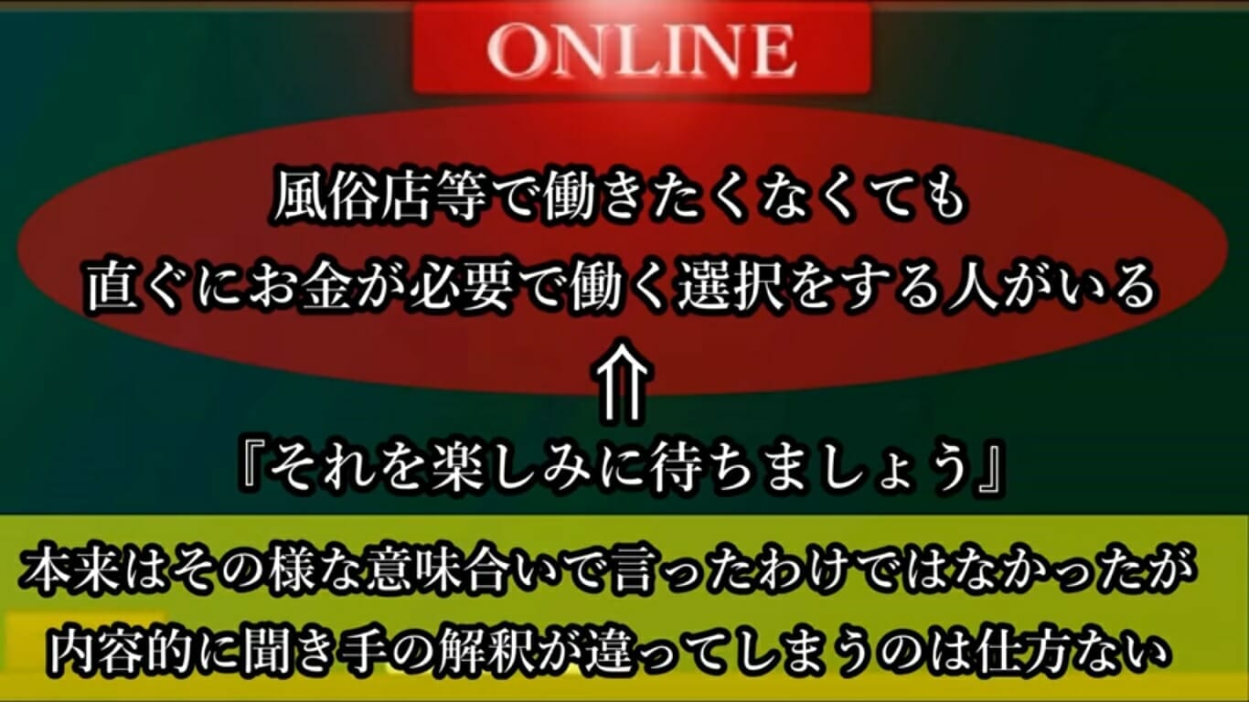 風俗業に関する岡村隆史の発言には、炎上はやむを得ないが差別する意図はないと述べたたっくーに対し、視聴者からは