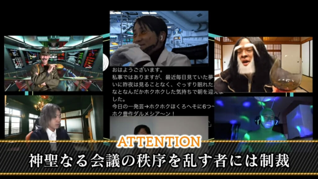 今回の動画では、東海オンエアのメンバーたちが碇ゲンドウや軍人、宇宙人に扮した裏の人物たちがTwitterのリプライへの返信を考える会議の模様を見ることが出来る。途中、返信案として一発芸を披露したてつやが「制裁」を言い渡されるなど、波乱の会議となっている。