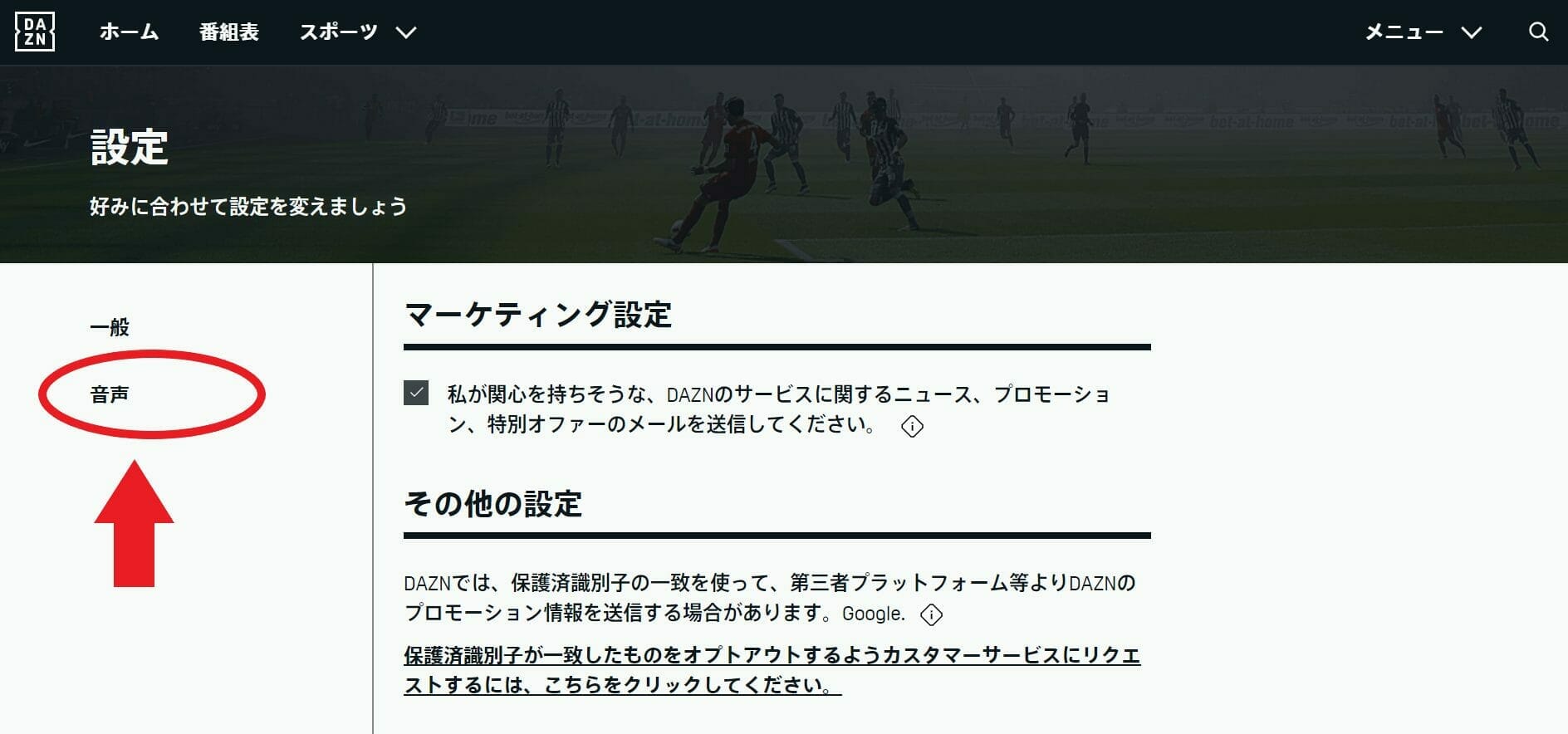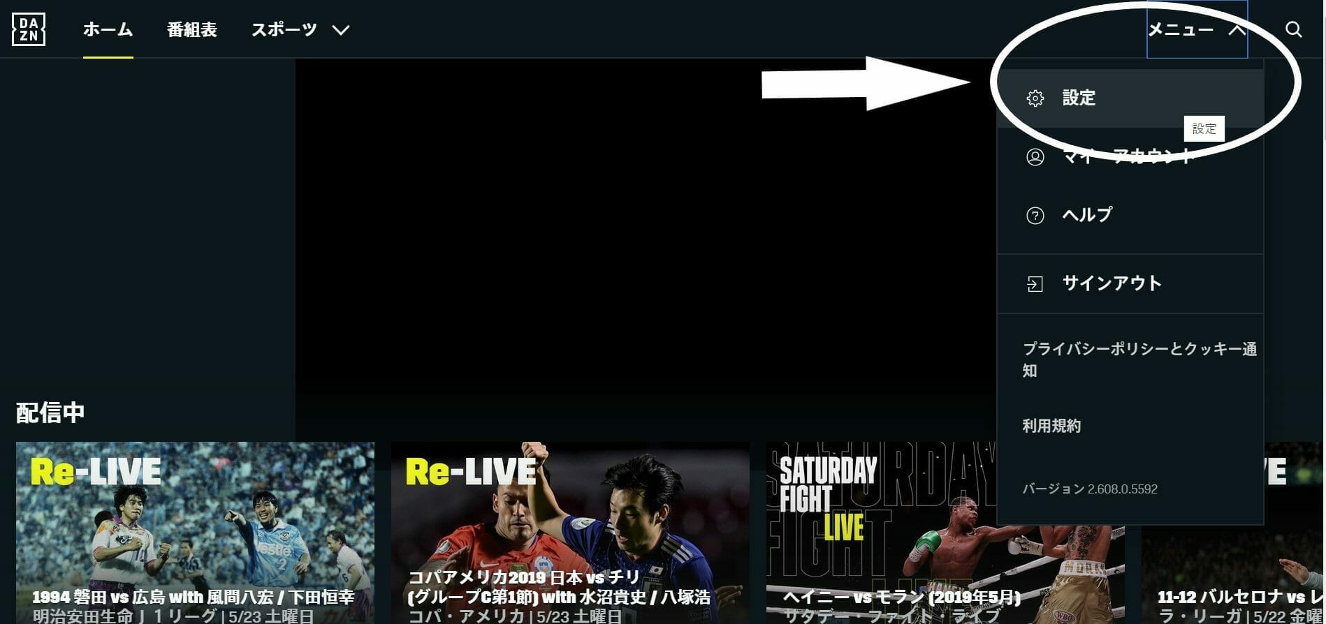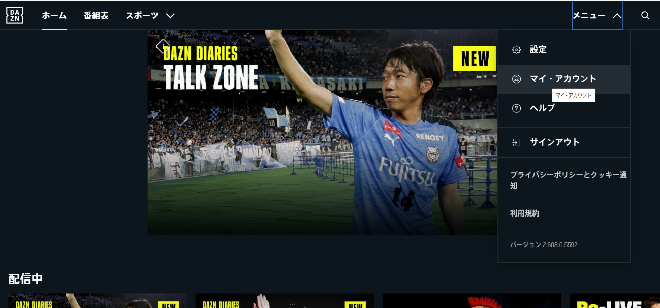 ・DAZN画面の右上「メニュー」内の「設定」を選択