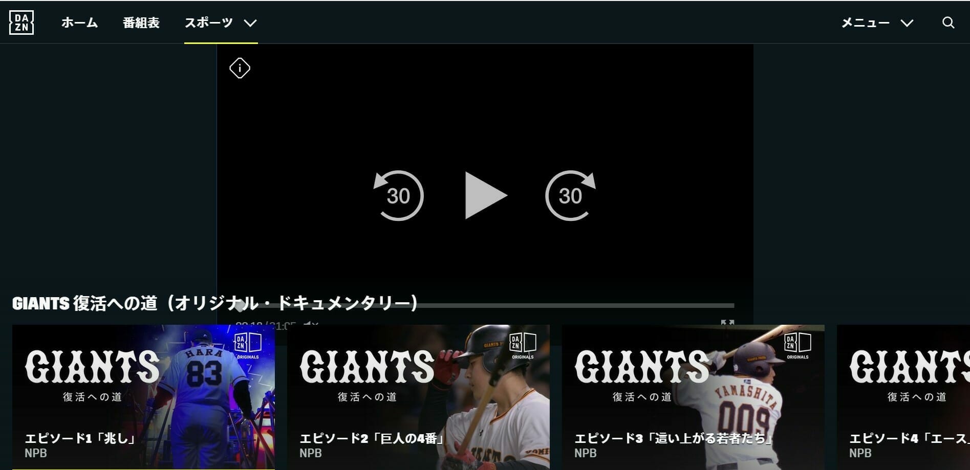 2019年末からはセリーグ優勝を果たした巨人のドキュメンタリー番組として、「GIANTS復活への道」というコンテンツを配信しているのだ。