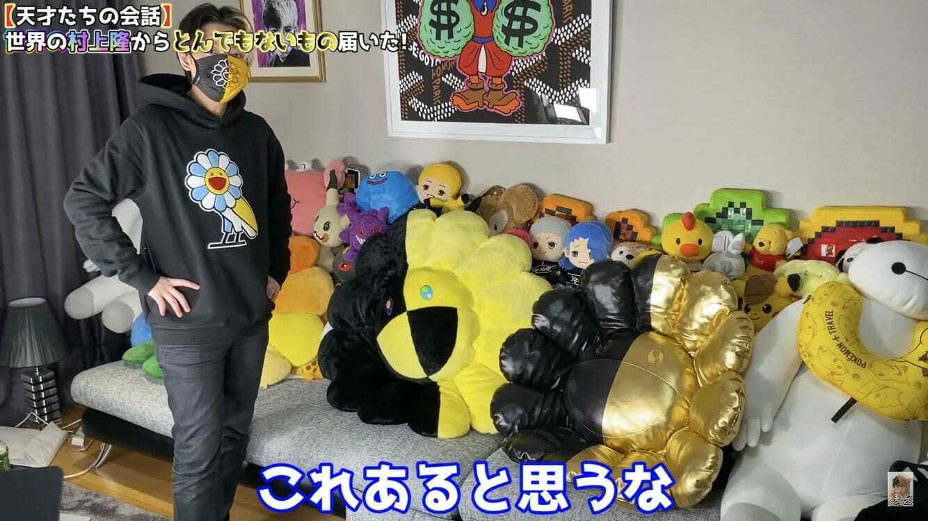 世界的アーティストの村上隆が、自身デザインのフラワークッションヒカル版を制作し、ヒカルのチャンネル登録者400万人を突破したお祝いとして届けた。