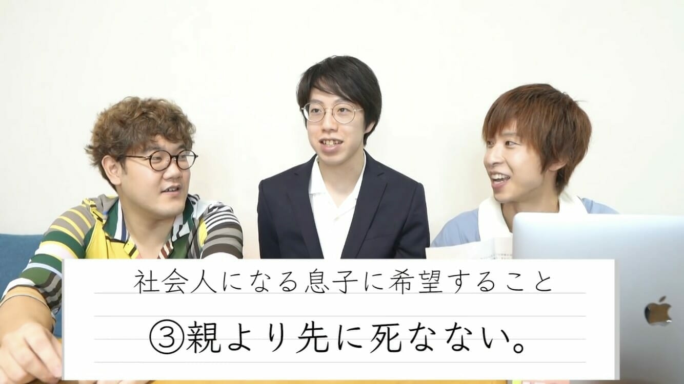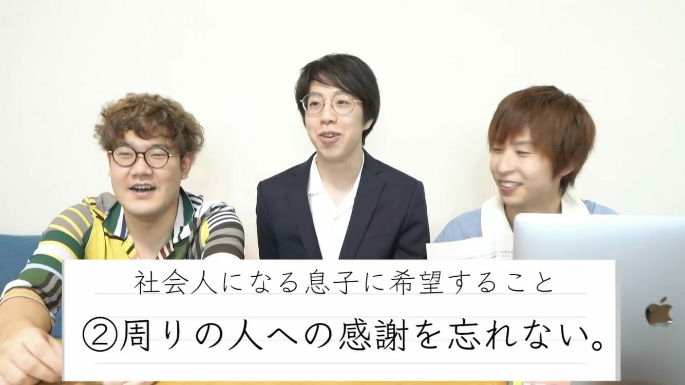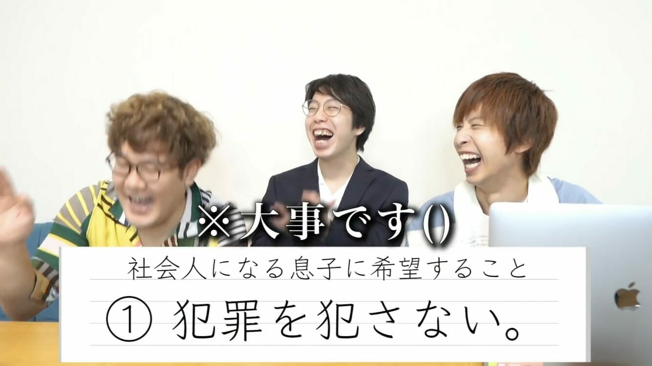 ①犯罪を犯さない、②周りの人への感謝を忘れない、③親より先に死なない、という条件が課され、親ならではの愛のこもったメモだった。