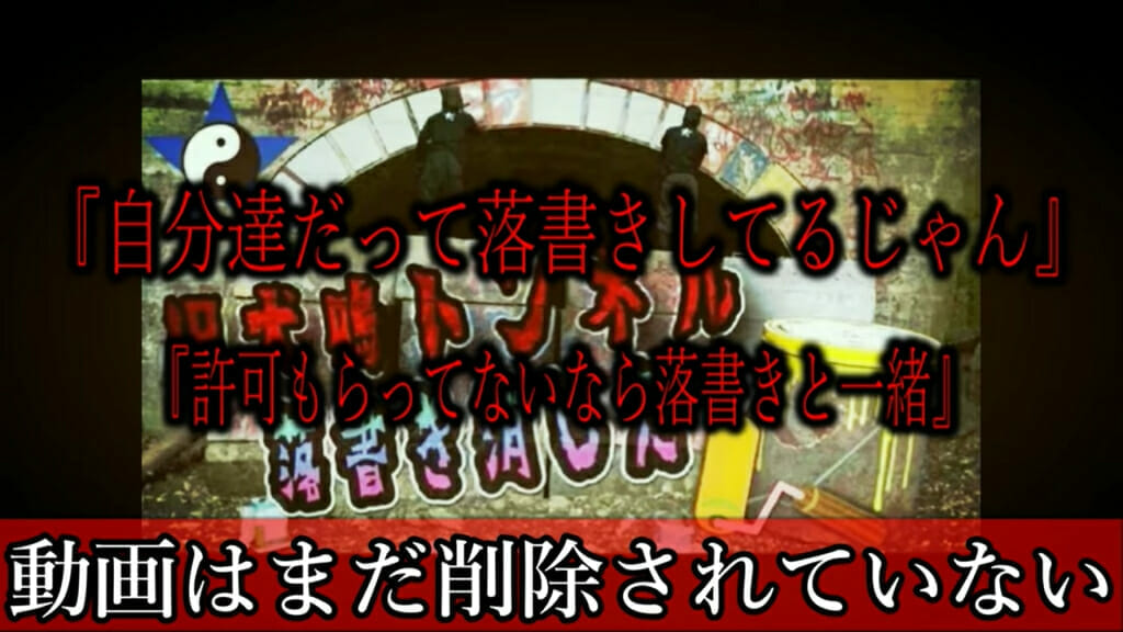 3人組Youtuberが、福岡県にある旧犬鳴トンネルを白いペンキで塗り炎上した事件。旧犬鳴トンネルは映画化されるほど「最凶心霊スポット」としても人気がある。無断立ち入りが続出し問題になっている最中に起こった塗装事件。たっくーTVもこれは犯罪だとコメントをしている。