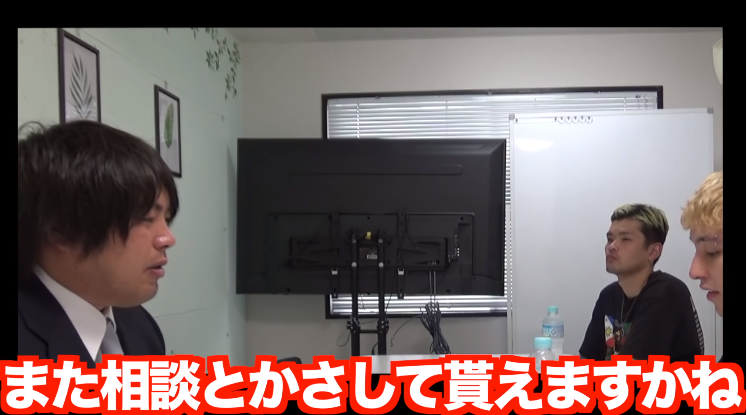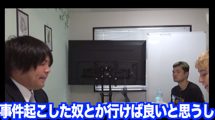 ①へずまりゅう、スーツ姿で登場。真剣な面持ちでエド・久保田へ謝罪