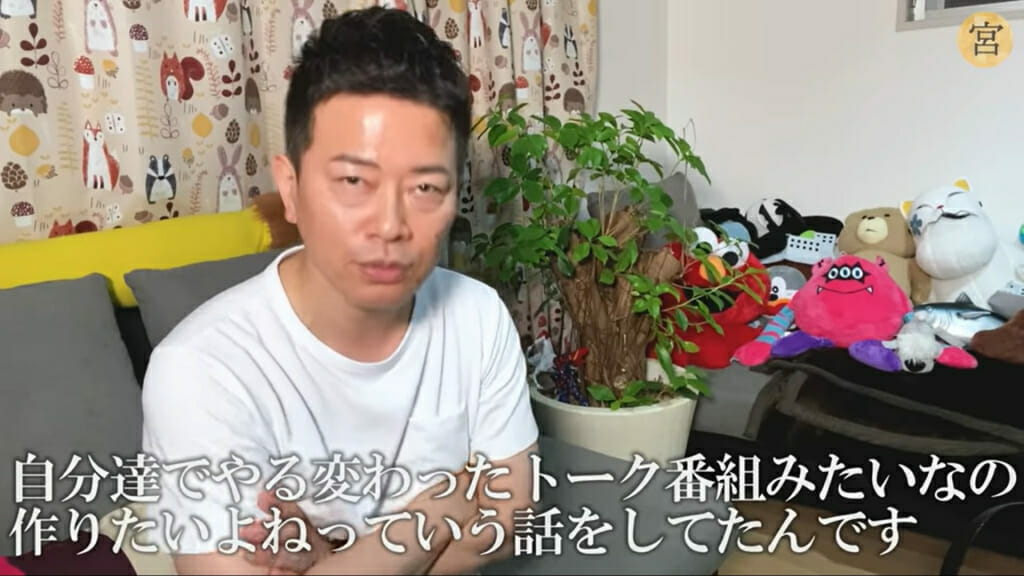 体が弱く産まれた宮迫は、産まれてから今まで、色んな人に迷惑をかけたとコメント。なぜ芸人になったのか、病気になったときの心境など、赤裸々に語った宮迫。また動画冒頭には「お笑いが好きで、また相方の横に戻りたい」とも話している。