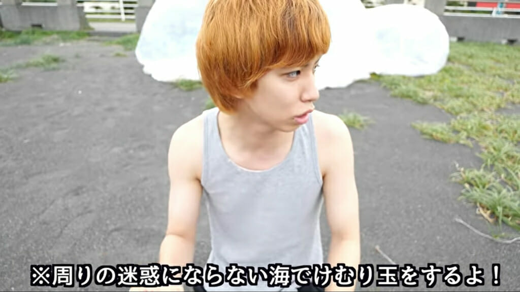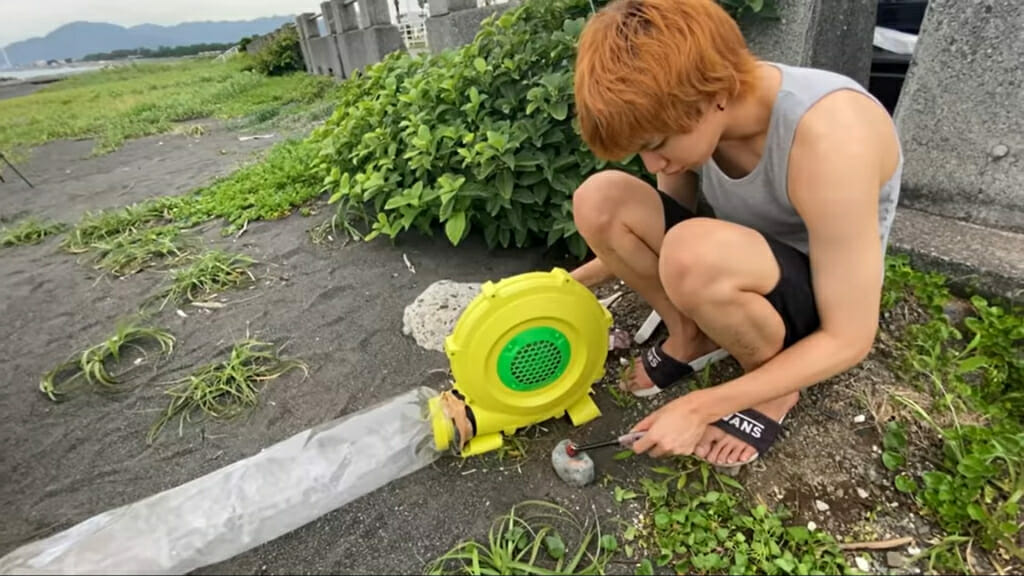 砂浜に透明なテントを組み立てたはじめしゃちょーは、テント内で煙玉を使用しテント内でカラフルな煙がどうなるのか検証をした。しかし、大量の煙玉を缶に入れ着火したため家事寸前に。別の方法としてテント外で煙を出し、吸引機で吸わせる作戦に移行。結果的に実験ははじめしゃちょーの理想とはかけ離れたものとなってしまった。