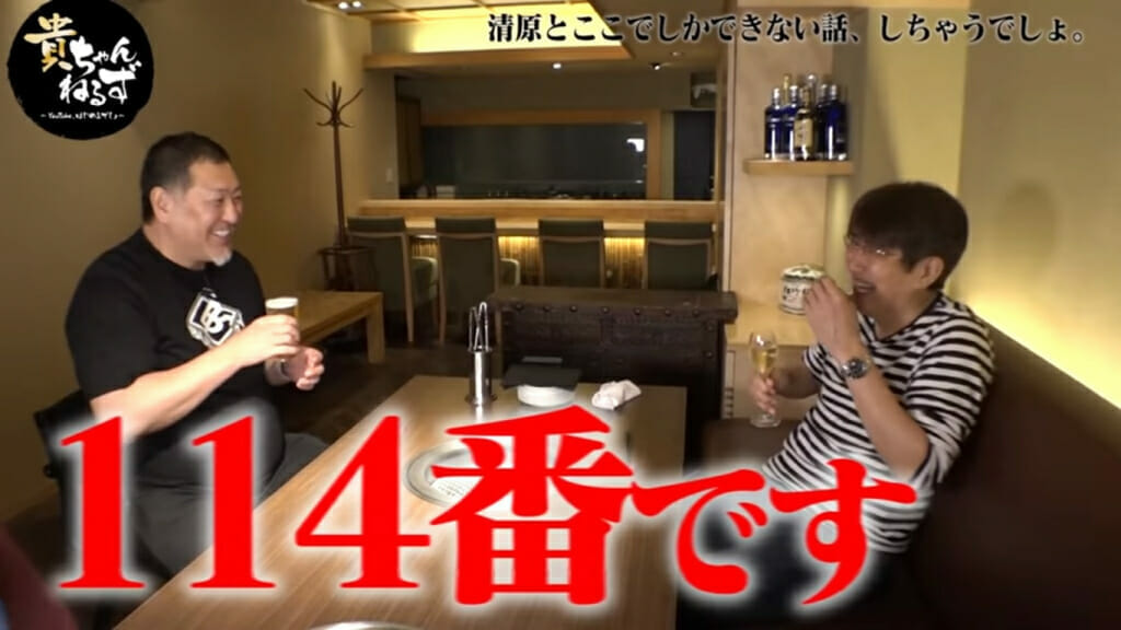 石橋貴明が「出所祝い?」と尋ねると、清原和博は「刑務所には入っていない」「(留置所で呼ばれていたのは)114番。最後の背番号です」と軽快に答えた。焼肉をつまみながら会話を楽しんだ二人に対して、視聴者からは