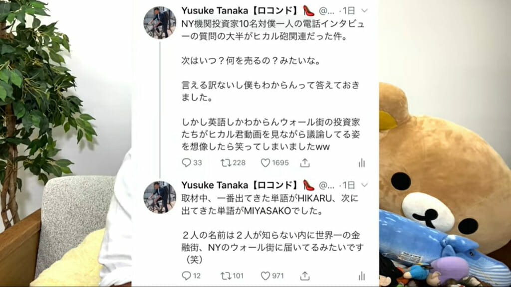 ロコンド社長 世界の株主や投資家たちから取材を受けヒカルについて質問が殺到
