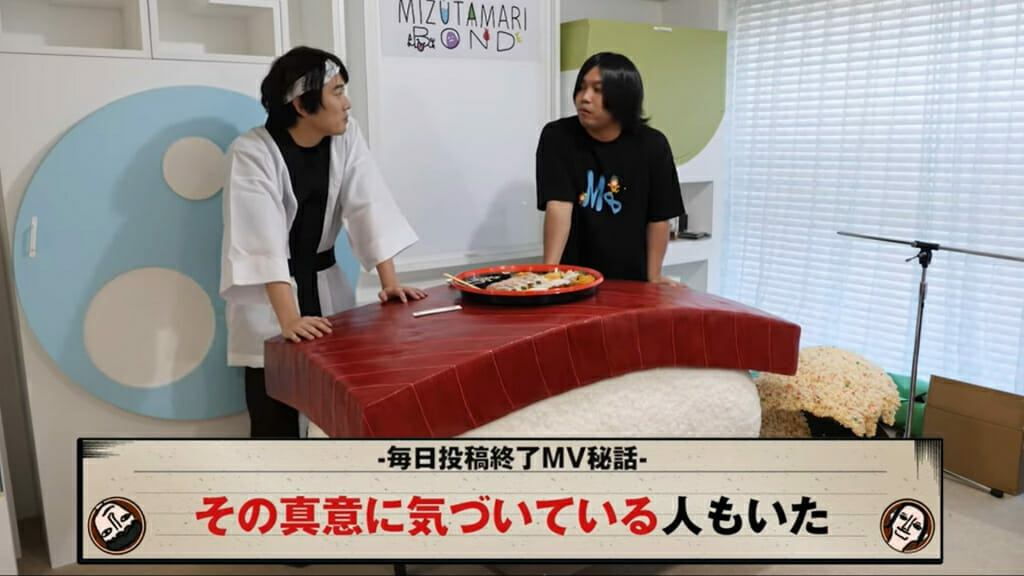 水溜りボンドが前日の2020年8月15日に公開した動画が、1日で300万回再生を超えた。大きい企画の後の動画だと何をやるか悩むとコメントをしながらも、お祝いとしてお寿司を食べることに。