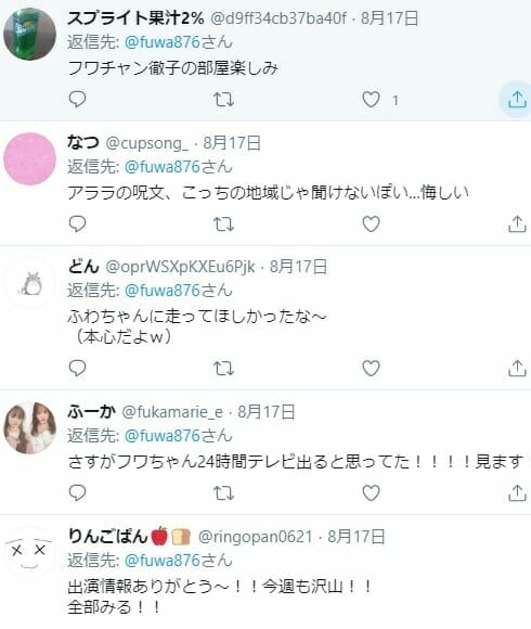 フワちゃんが出演を発表した番組は、「24時間テレビ」や「世界くらべてみたら」など合計15番組に上る。8/19(木)には、毎日新聞夕刊「日本への発言」にも掲載される予定で、活動の幅を広げている。本人は、「わたあめ引っ張り出してみんなで食べるっしょ!!!みてすぎ!」と視聴を呼びかけた。