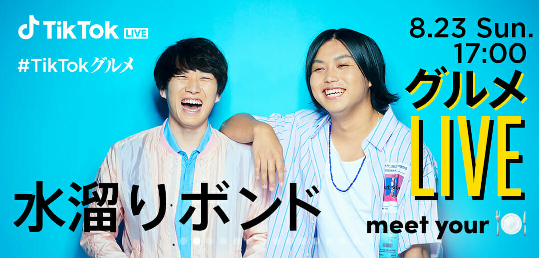 大人気YouTuberの水溜りボンドが、TikTok Liveに初参戦することがわかった。8月17日(月)〜8月30日(日)の2週間 にわたり開催される「#TikTokグルメ」の一環としてグルメについて生配信するとのことだ。