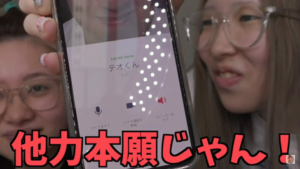 電話をかけた相手に動画の企画を考えてもらうという趣旨の動画で、最初にテオくんに電話をかけたまあたそ。電話に出たテオくんは、「100%伸びる企画」と前置きした上で「まnげ剃ってみた」(動画の字幕通りの表現)と回答した。エミリンはすかさず電話を切り、仕切り直しでジュキヤに電話をかけたが、突然の下ネタ発言に「セクハラ」だとの指摘がある。