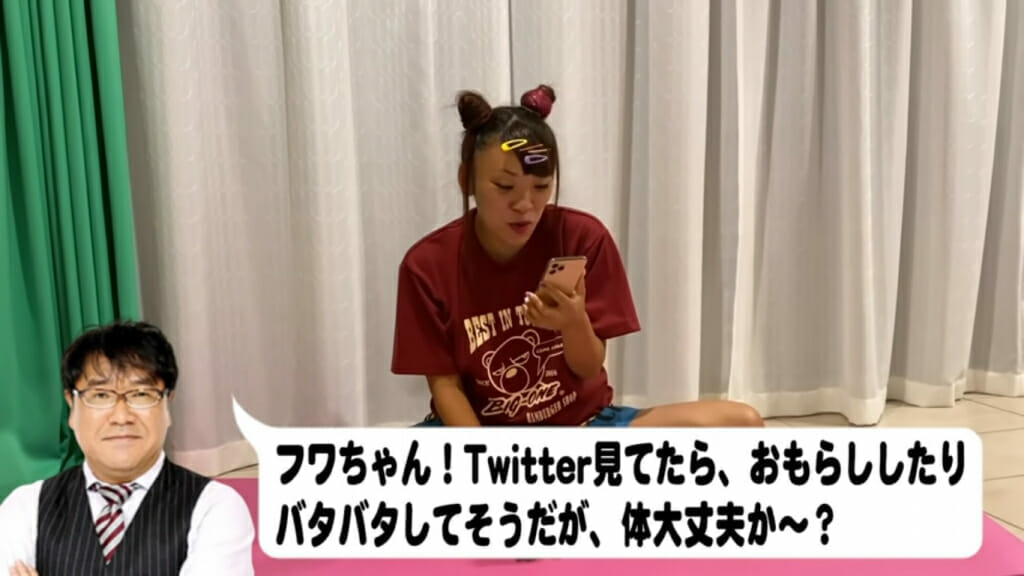 フワちゃんは、番組の和やかな楽しい雰囲気の中で、つい「嬉ション」してしまったことを明らかにした。また、芸人のカンニング竹山から心配するLINEが来ていたといい、感謝の意を表した。今回の一件で、リラックスし過ぎていたことを反省し、今後は「プロ意識」を高めていきたいとも語った。