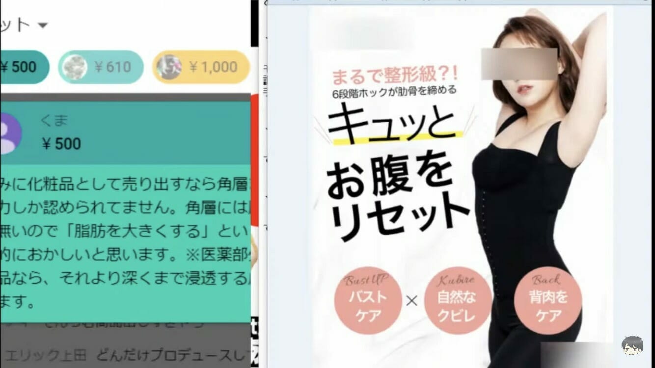 クビレディにも疑惑が持ち上がった。こちらの商品はお腹をしめてクビレを作るという商品だが、他のプロデュース商品が疑惑だらけのため、こちらの商品もイカサマなのではないかと言われているのだ。