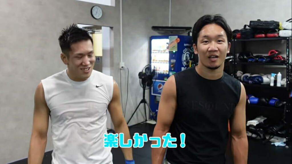10名以上の喧嘩自慢達とスパーリングをすることになった朝倉未来と、現RIZINファイターの白川陸斗。手加減をしている朝倉未来と白川陸斗だが、喧嘩自慢達も負けじと全力で対戦していく。終わりにはきちんと両手も合わせ、最後まで男らしさを発揮したスパーリングとなっている。朝倉未来と白川陸斗も、「皆気合が入っていて楽しかった」とコメントした。