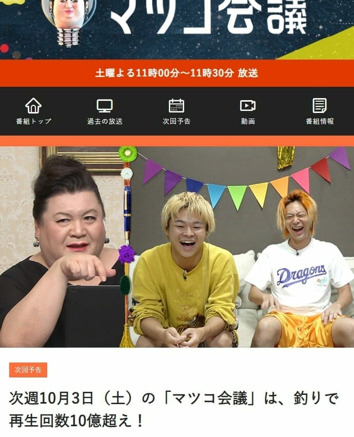 東海オンエアが選ばれた。また東海オンエアは「釣りで再生回数10億超え」と紹介されている。てつやとしばゆーが出演する「マツコ会議は」10月3日(土)午後11時か日本テレビにて放送される。