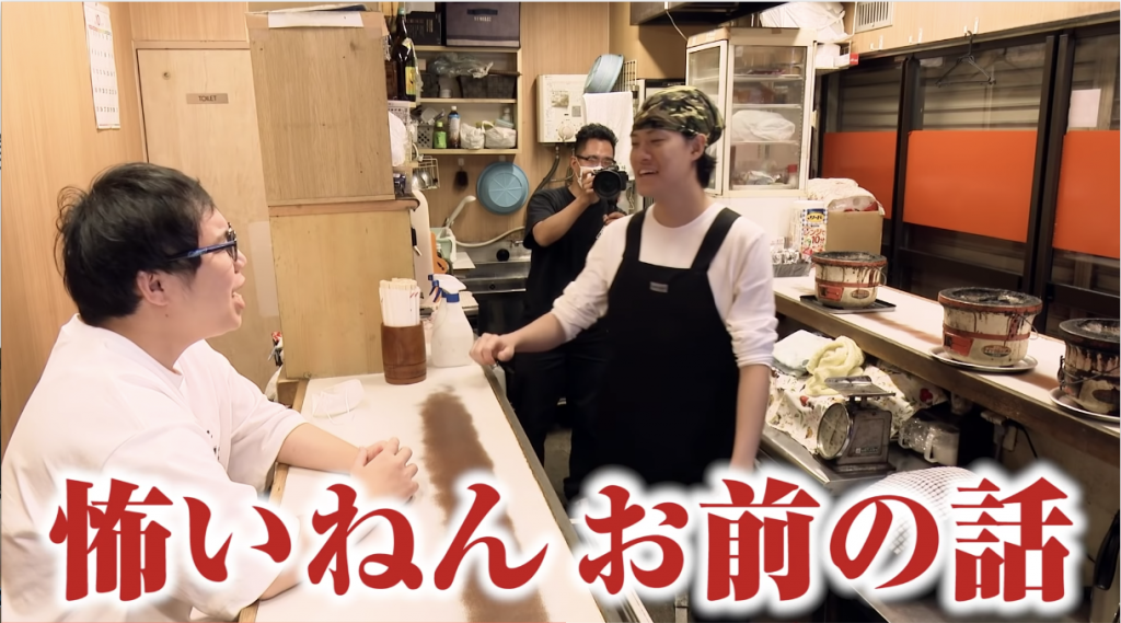 粗品の実家での撮影なだけあって、実家トークに華が咲くふたり。焼肉屋「味希」は元々は粗品の父親の店だったという話から、父の死際の最期の言葉についてのエピソードを披露した。