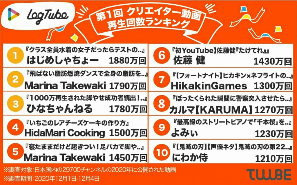 LogTubeが開発した独自ツールで計測し、ランキングを集計してみました!2020年を振り返りながらご覧ください。