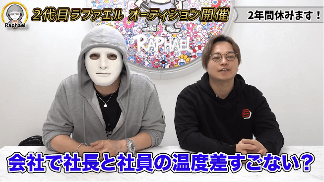 今回の動画では、産後はOLとして早めに復帰し働きたいという奥さんの要望もあり、ラファエルが2年間の育児休暇を取ることを報告した。以前から2代目ラファエルを募集していた背景には、こういった事情もあったのだという。