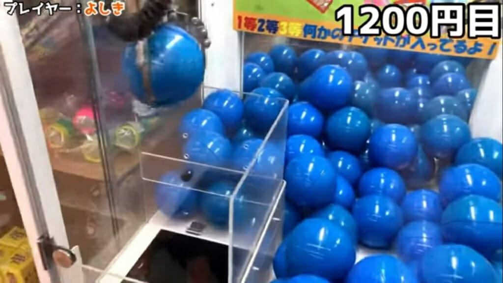 特賞のニンテンドーSwitchを狙い、確率機のくじクレーンゲームのあたりがなくなるまでプレイすることにした、よしきと青字幕の人。6万円を投じ、全てのカプセルを空けるも、特賞が一つも入っていないことが判明し、店員に問い合わせることになった。店が業者に問い合わせたが納得のいく説明は得られず、後日、警察の立ち合いのもと業者から返金が行われた。