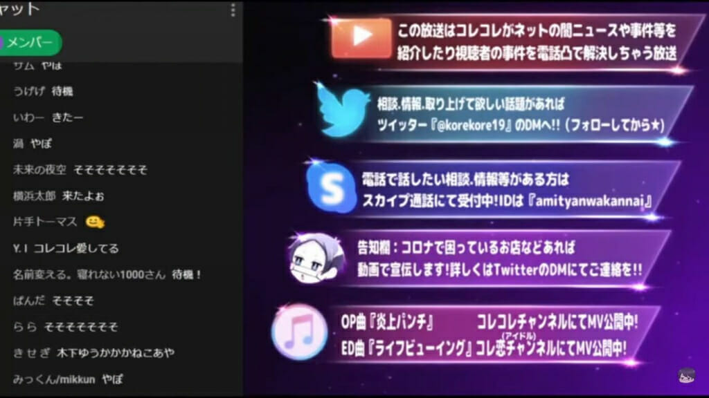 コレコレは、DJ社長本人から聞いた話として、レペゼン地球が解散した後、海外で大麻を販売することを希望していることを暴露した。「本当かどうか知らんけど」と留保を付けたが、突然の暴露に視聴者からは「え」「やば」など困惑を隠しきれないコメントが寄せられた。