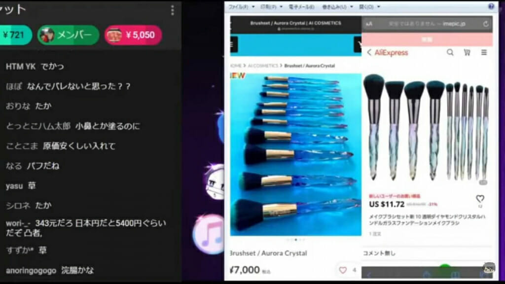 パクり疑惑のある商品は、メイクブラシやメイクスポンジなどの化粧品で、1万円以上するものもある。告発者は、中国のアリ・エクスプレスやアリババで画像検索すると同じものが見つかったといい、そのサイトでははるかに安い価格で販売されていたという。