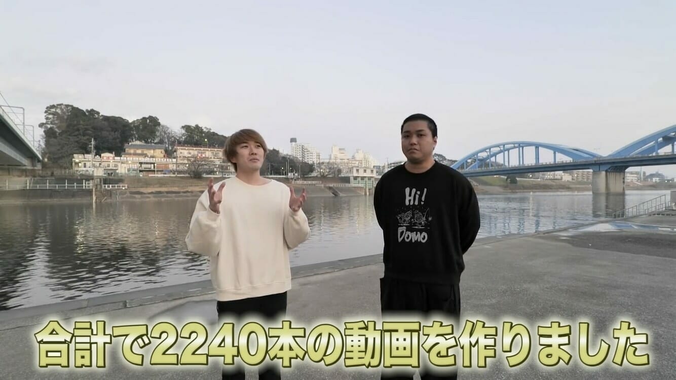 最初に動画を撮影した多摩川で今までの企画を振り返り、ファンヘ感謝の思いを伝えた。水溜りボンドは6年間で合計、2240本の動画を投稿するという快挙を成し遂げた。