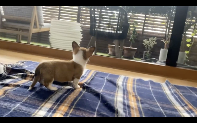 まだ生後間もない赤ちゃんコーギーであり、体も小さく、尻尾も長い。