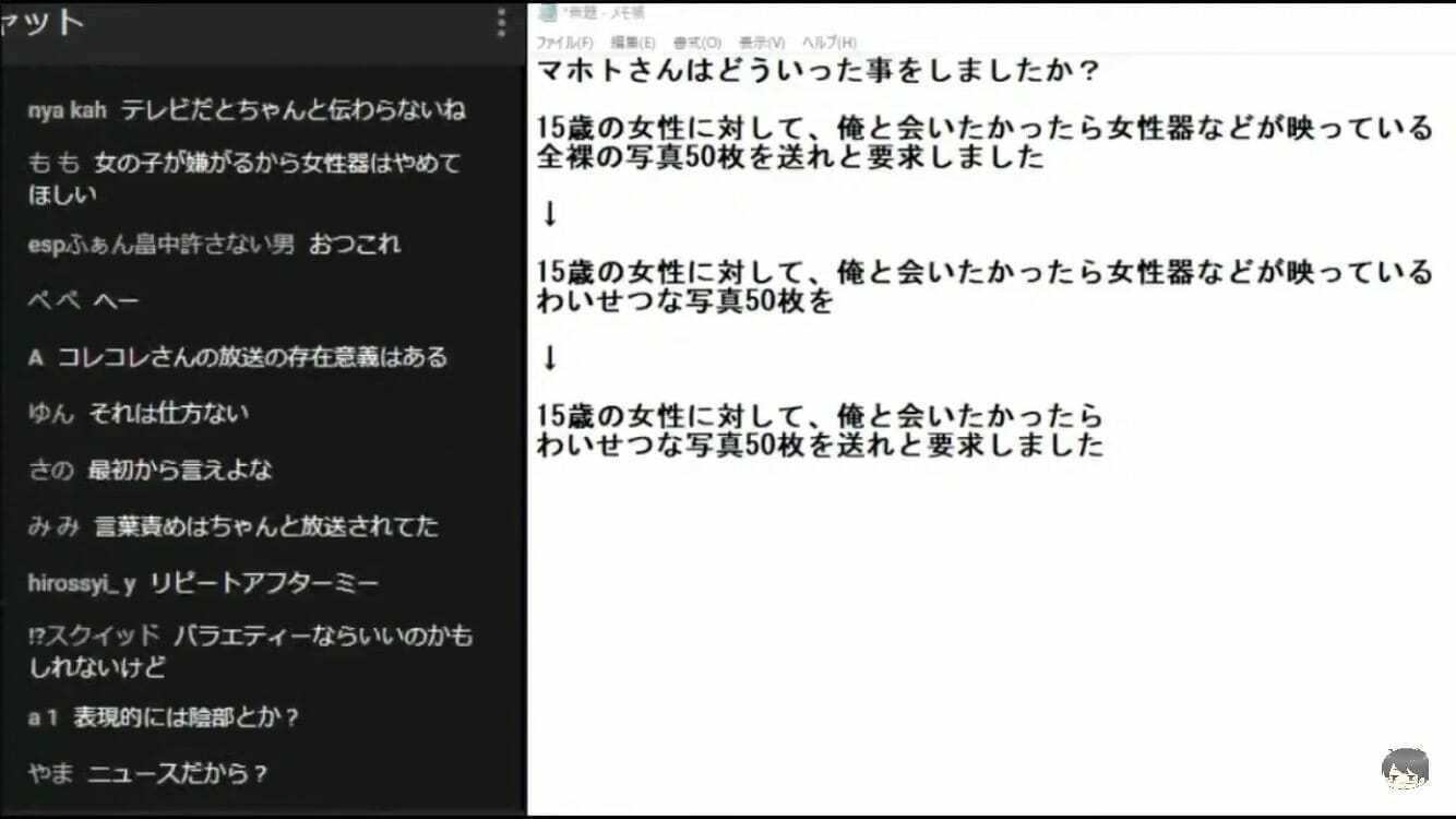 またコレコレの配信では、マホトが別の女性とやりとりした画像を公開し、別の女性にもわいせつな画像を要求していたことを告白した。