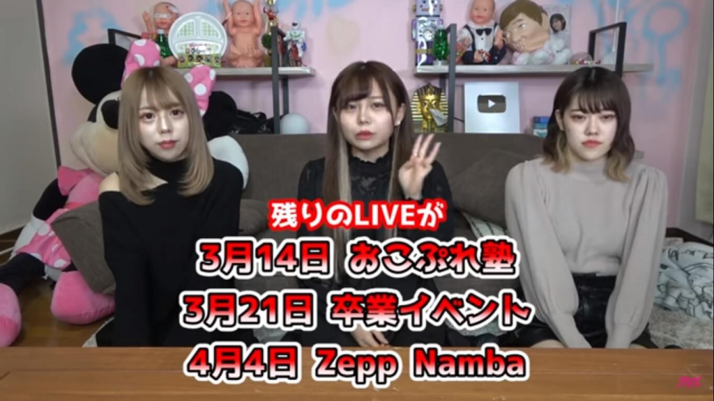 今後は、ずっとやりたかったことであるアイドルの運営を手掛け、裏方として参加するという。また、メンバーそれぞれとの思い出を出会いから振り返った。卒業後も、編集の関係で、しばらくは動画に登場することはあるとも話した。
