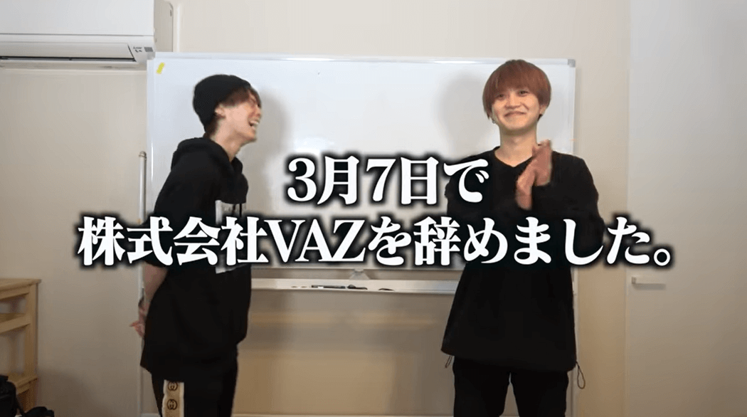 既に半年前から辞める手続きはしていたが、契約期間の関係でこの日の退所となったそうだ。しっかり契約期間を守ったことに関しては、自分より先にVAZを辞めた人について「話し合いに行って2時間くらい待ってたんだけど、こんなギリギリで(ボコボコにされた状態)帰って来たから、俺は契約しっかり守ってこの日に辞めた」と、冗談で話した。