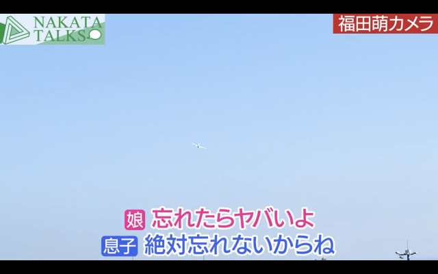 ガラガラの空港の中をダッシュする様子や中田の乗った飛行機に向かって「絶対忘れないからね」という可愛らしい場面があった。