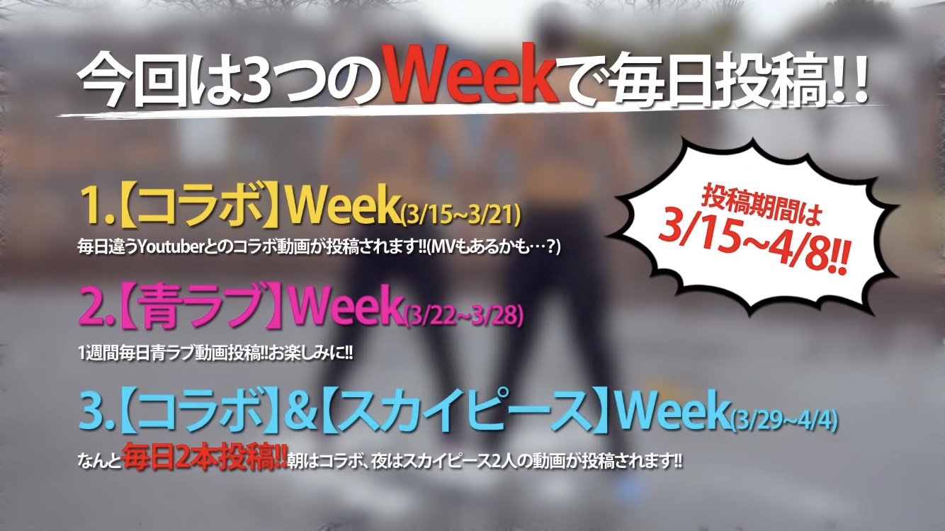 2021年3月14日、人気YouTuberのスカイピースが、期間限定で毎日投稿を開始することを発表した。今までハードルを上げ過ぎて、なかなか動画投稿できなかったこと反省示し、スカイピース第二幕の幕開けを発表した。