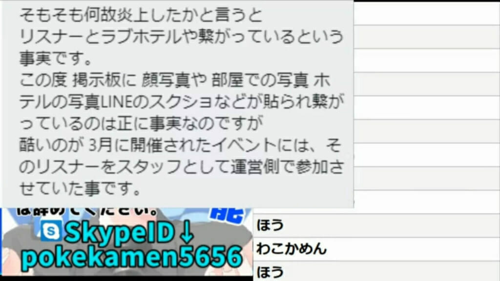 ポケカメンにDMでタレコミがあり、シクダイのふわりが既婚者でリスナーの女性と不倫していたことが判明していた。さらに、ふわりが他の女性とも関係を持っていたことを示唆する写真が掲示板に投稿されるなど、炎上している。