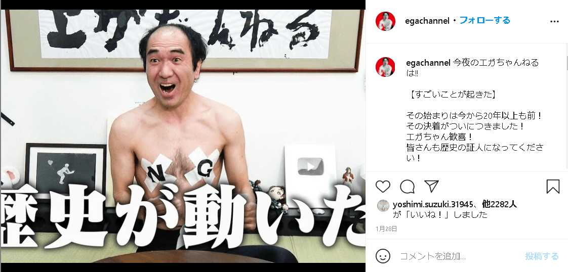 (出典:エガちゃんねる EGA-CHANNEL Instagram)