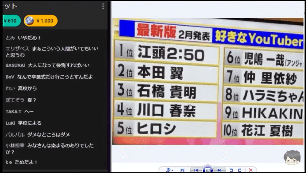 ちなみにこのランキングは、2021年2月26日に発表されたORICON NEWSの「第3回 好きなYouTuberランキング」と同じであり、ここから出題したものだと思える。