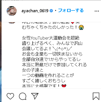 2021年4月14日あやなんがInstagramにYouTuberの女子会の写真を投稿して炎上。コロナ禍でマスクをせずに女子会をしていることや、多くの人が集まる大運動会の企画への批判が多数寄せられている。